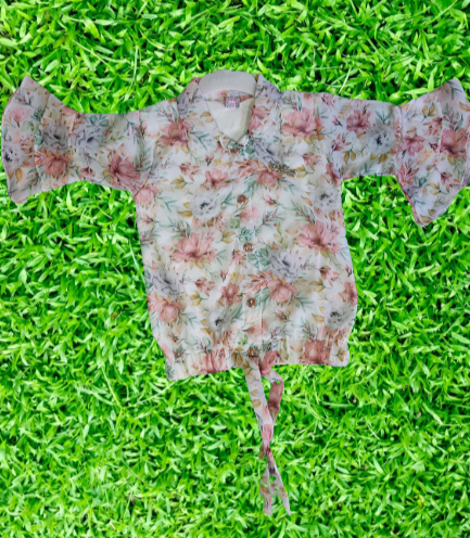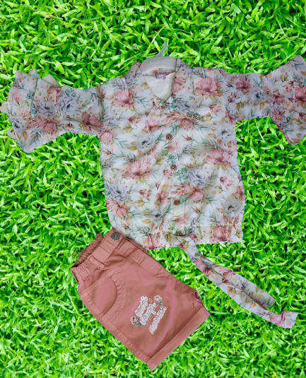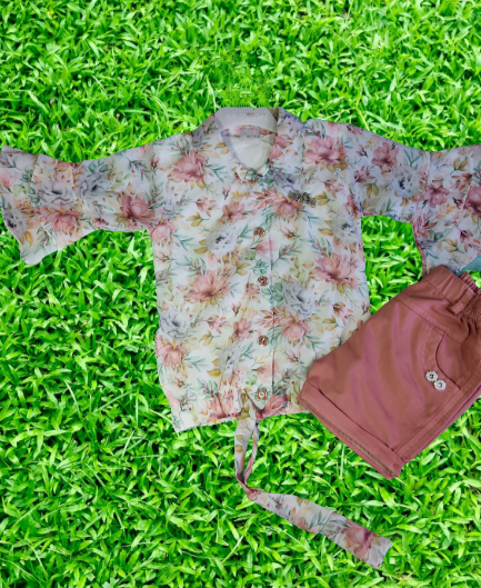 • Fabric: Georgette flower print top, Denim shorts